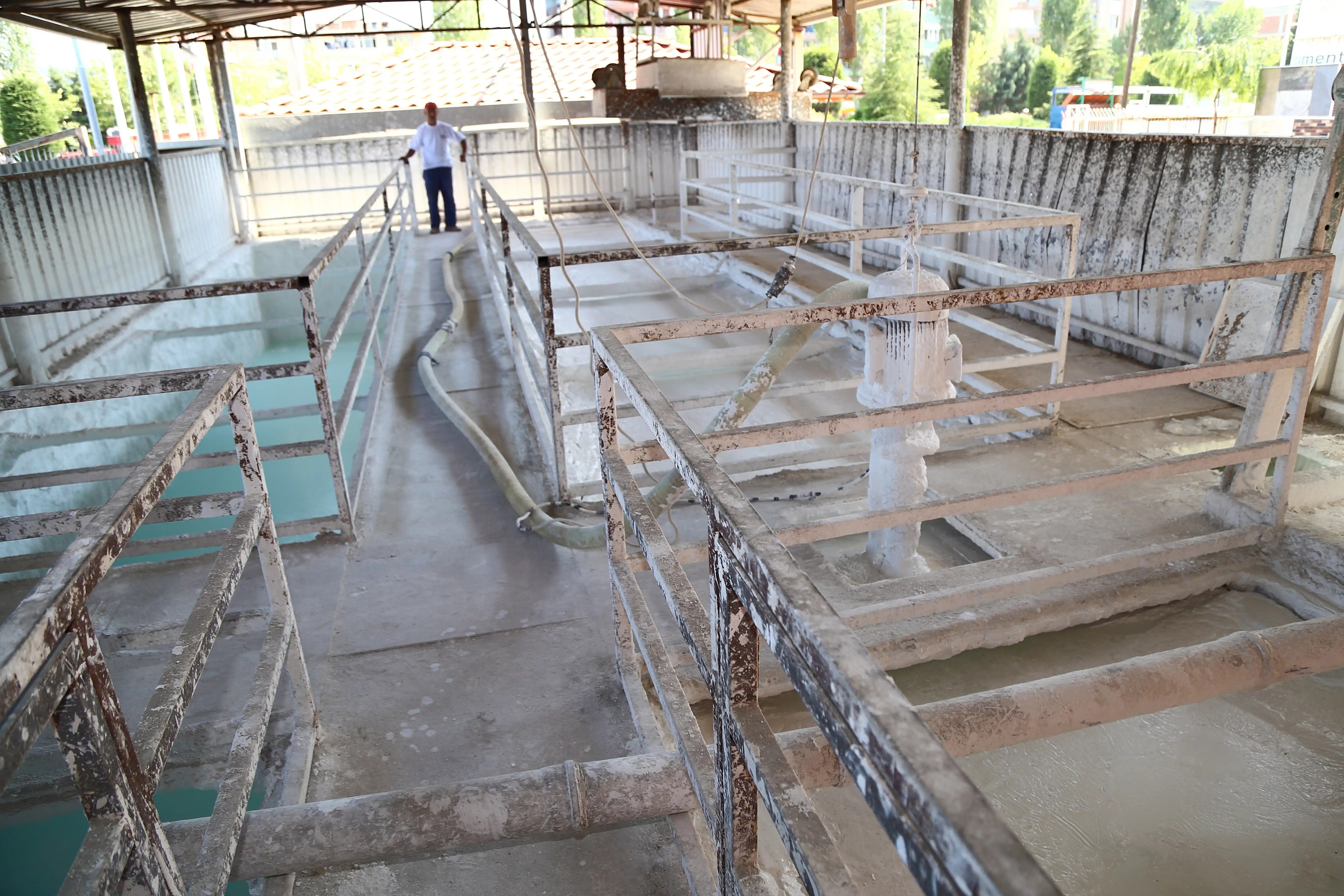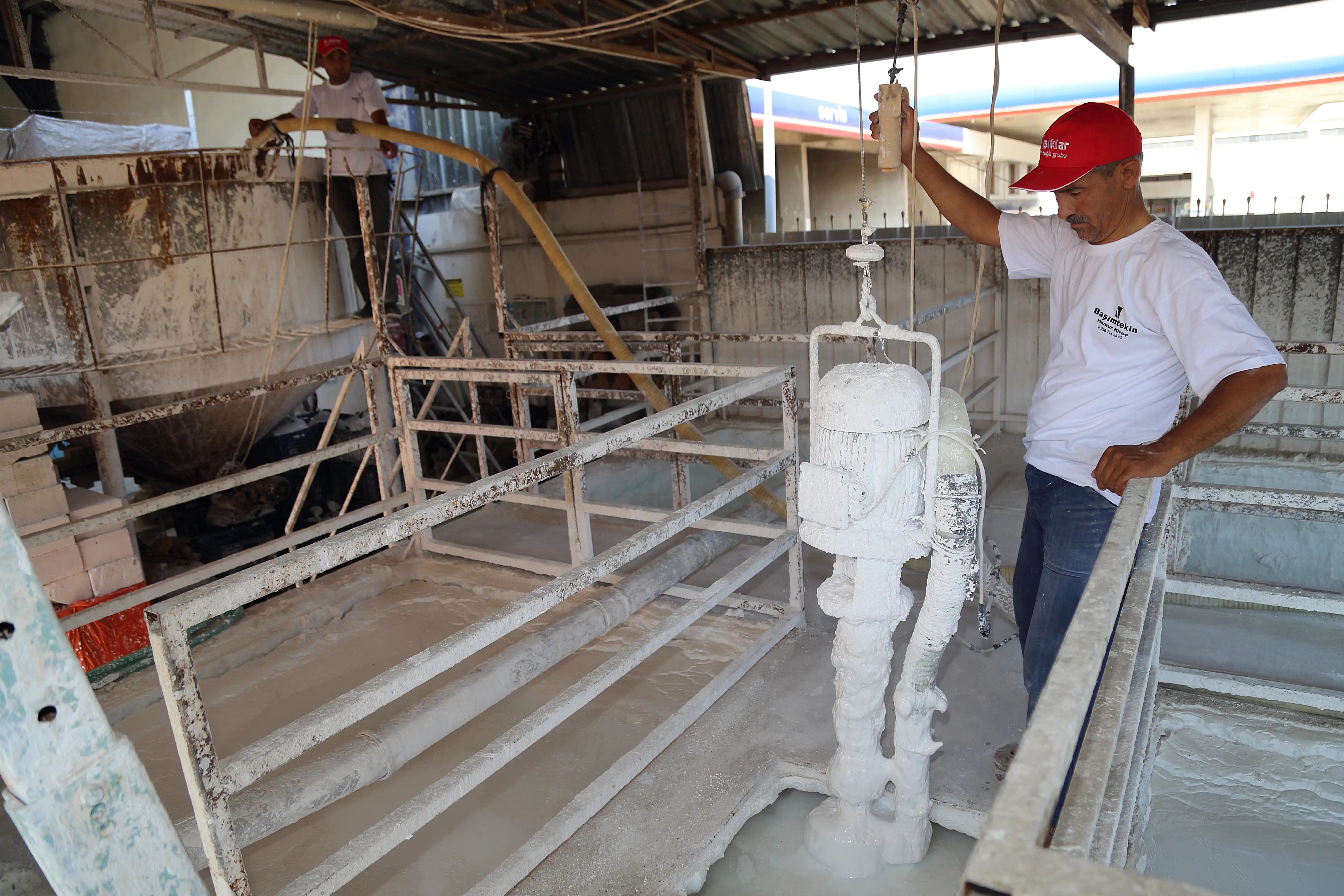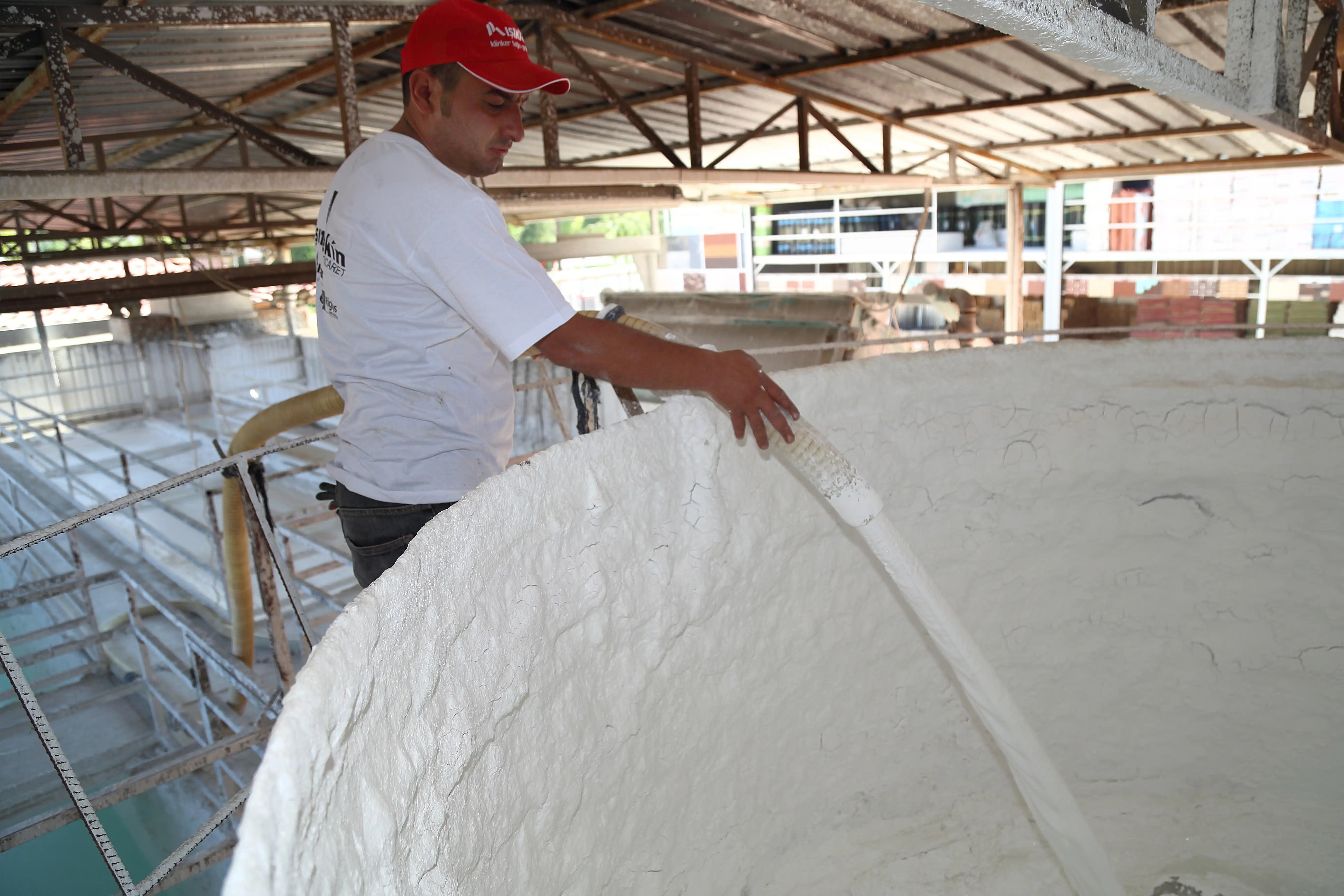 Hamur kireç, son paketleme öncesi havuzlardan tanklara alınarak torbalanmak üzere hazırlanır.
