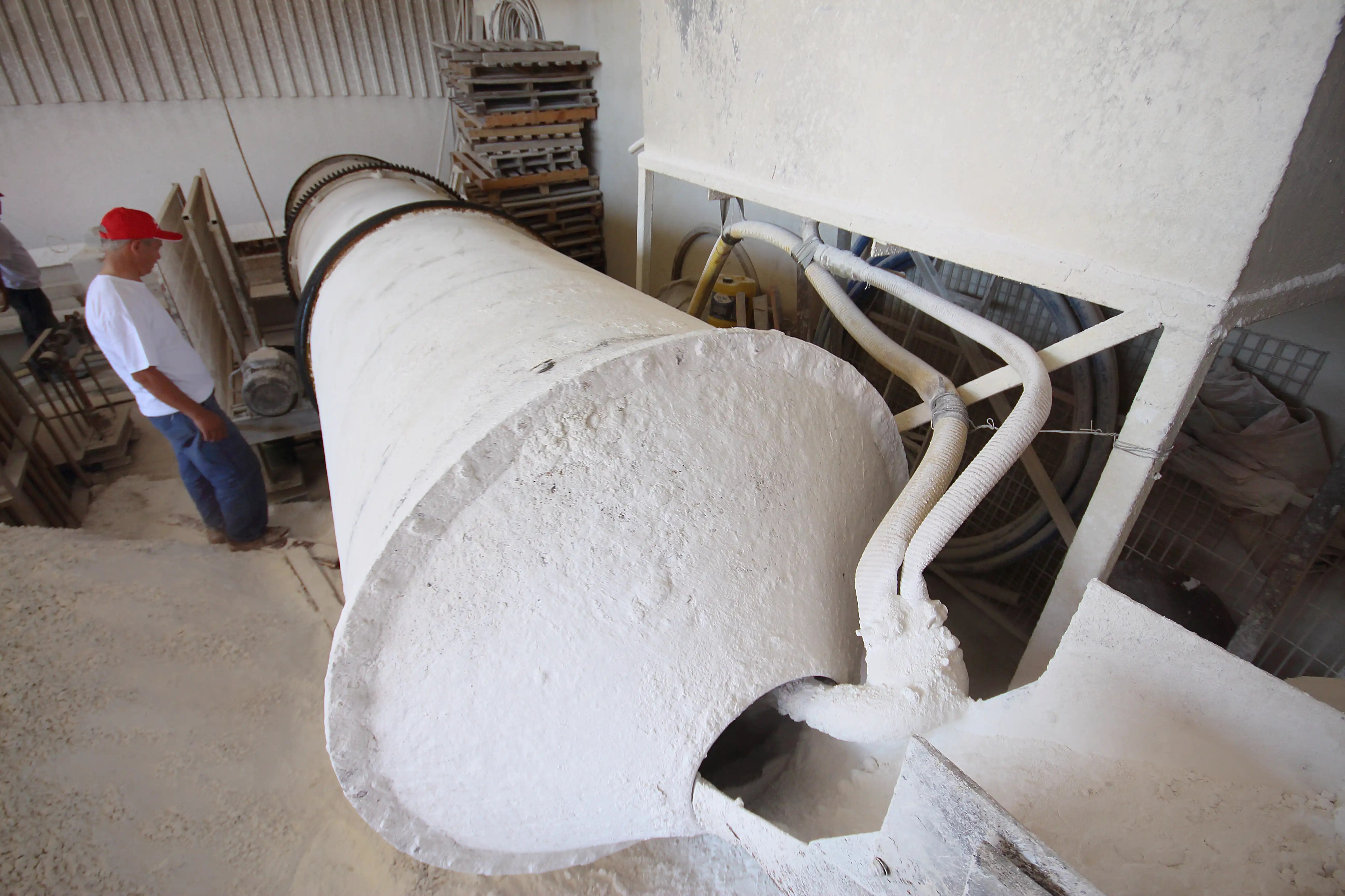 Kireç taşları, genellikle büyük makineler aracılığıyla kırılır ve öğütmeye hazır hale getirilir.